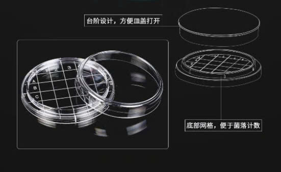 - The grid design on the surface of the plate makes colony counting easier